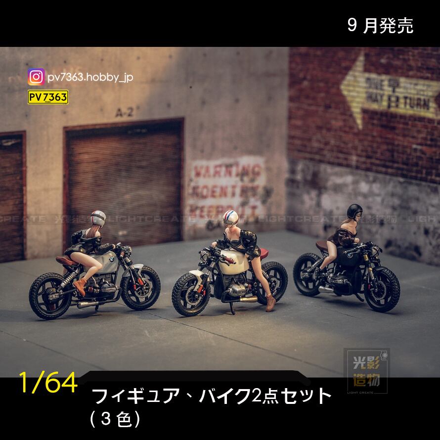 9月発売 Light Create 1/64 フィギュア バイク 2点セット(色:ブラック)