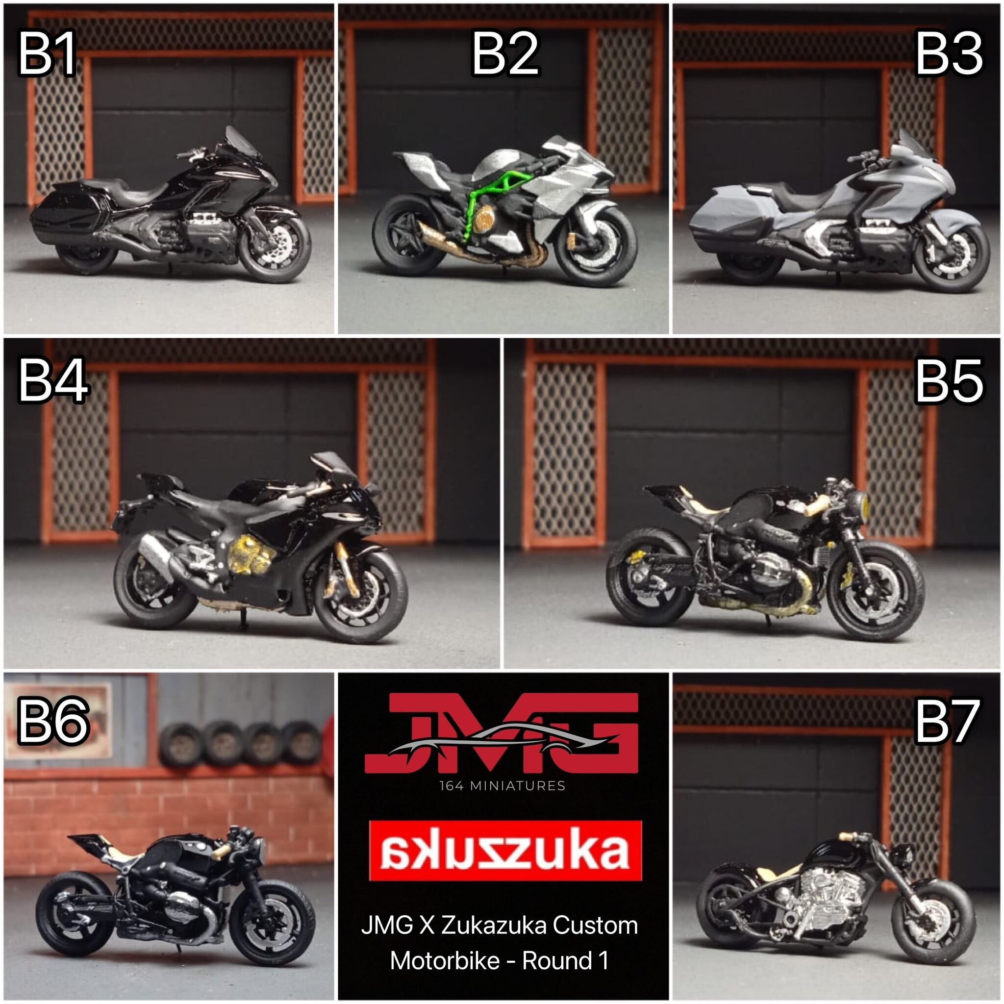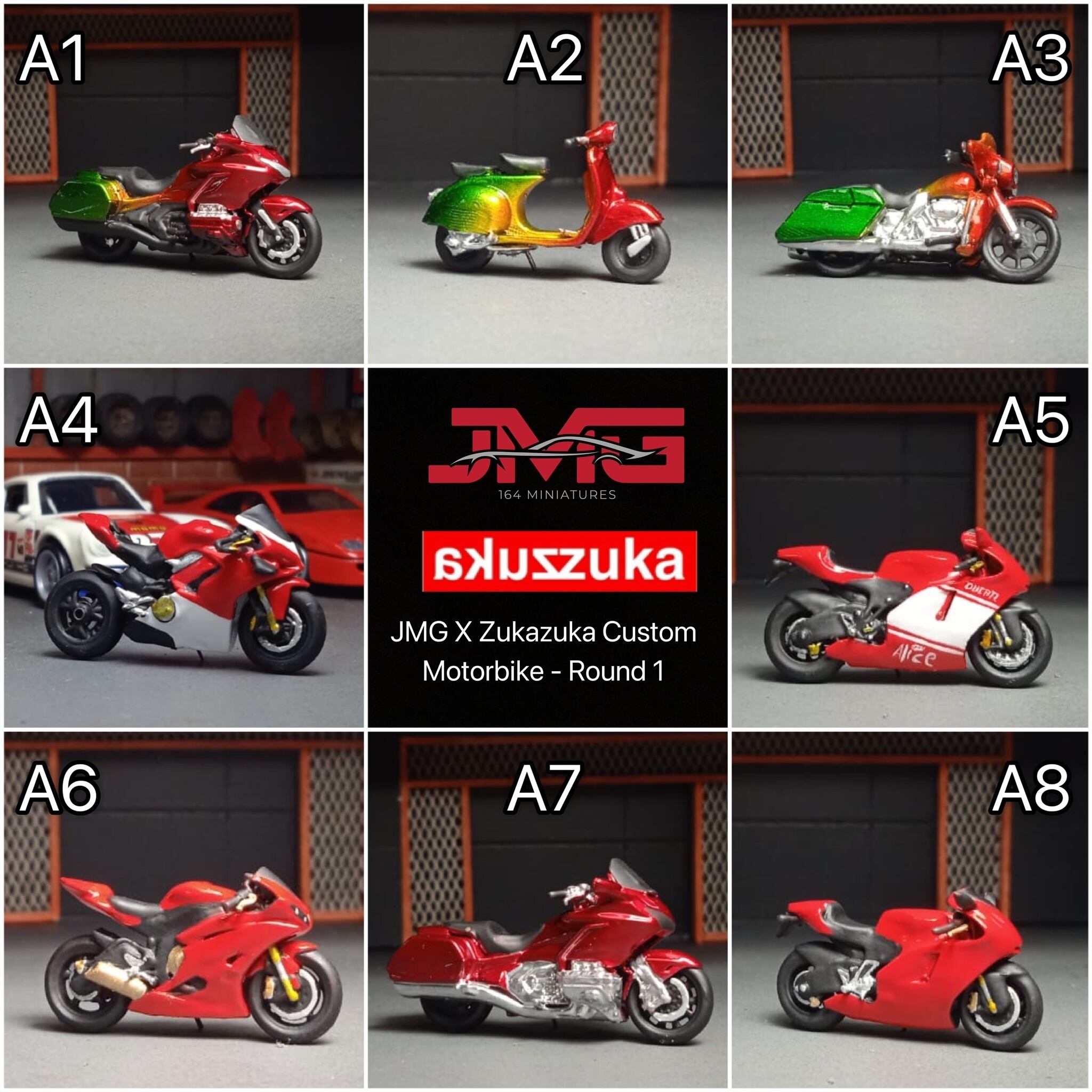 「6月下旬発送予定」1/64 JMG x Zukazuka Custom バイク シリーズ1(A~D)
